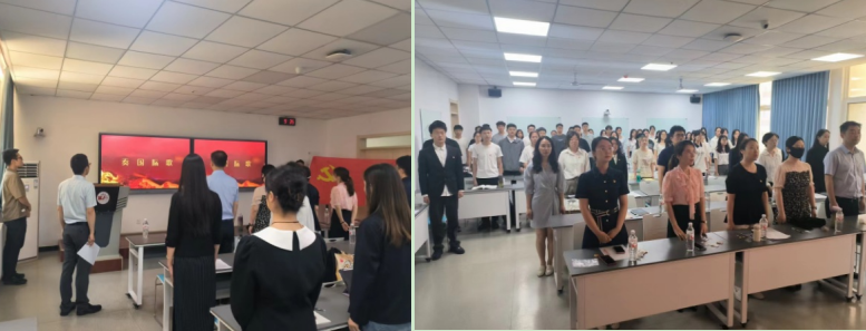学院党委组织员李小斐领誓,全体党员面向党旗,高举右拳,庄重而坚定的宣誓,向党组织作出庄严承诺。