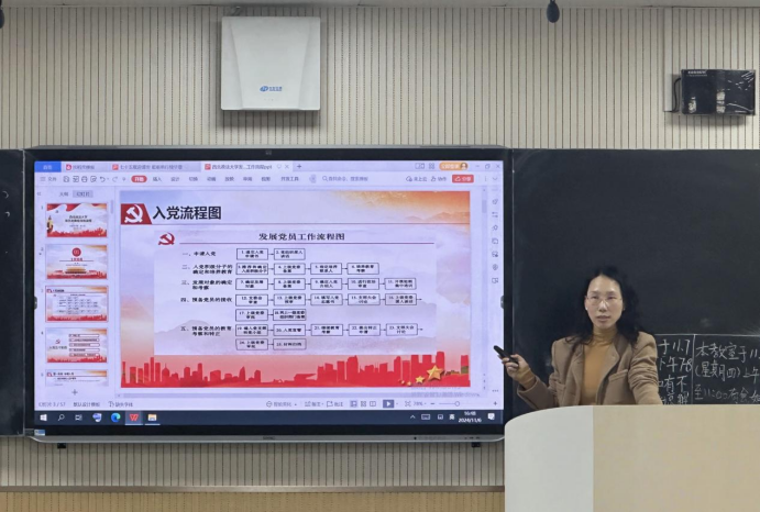 培训还详细阐释了入党的五个阶段,即申请入党、入党积极分子的确定和培养教育、发展对象的确定和考察、预备党员的接收、预备党员的教育、考察和转正。李小斐着重强调了党员发展流程的关键环节,包括政审的详细过程、预备党员大会的重要性、教育考察的要求、入党宣誓仪式的意义,以及毕业后当党员组织关系处理方式。