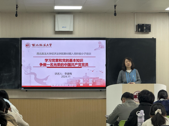 11月3日下午,新葡的京集团35222vip党委开展了第68期入党积极分子培训班第一次培训。此次培训以“学习党章和党的基本知识,争做一名光荣的中国共产党党员”为主题,由学院党委书记李建梅主讲,培训班全体学员参加。