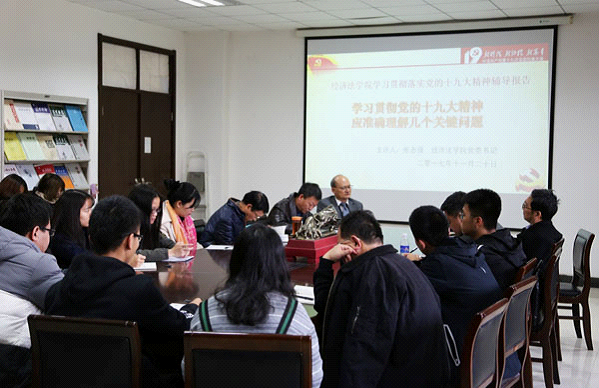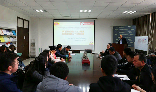 11月17日下午,院党委在长安校区正心楼二楼新葡的京集团35222vip资料室召开中心组扩大会议。院党政领导、党委委员、党支部书记、全体辅导员、行政管理人员和师生代表参加了会议。院党委书记张志强作十九大报告学习的辅导。