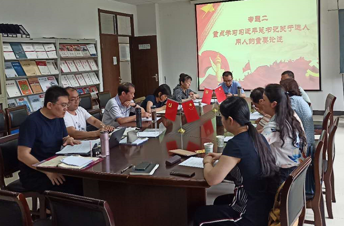 会议学习了《坚持用全面辩证长远眼光分析经济形势努力在危机中育新机于变局中开新局》、《牢记初心使命 推进自我革命》、《贯彻落实好新时代党的组织路线 不断把党建设得更加坚强有力》、《严把标准公正用人拓宽视野激励干部 造就忠诚干净担当的高素质干部队伍》、《党政领导干部选拔任用工作条例》、《干部选拔任用工作监督检查和责任追究办法》等学习材料。