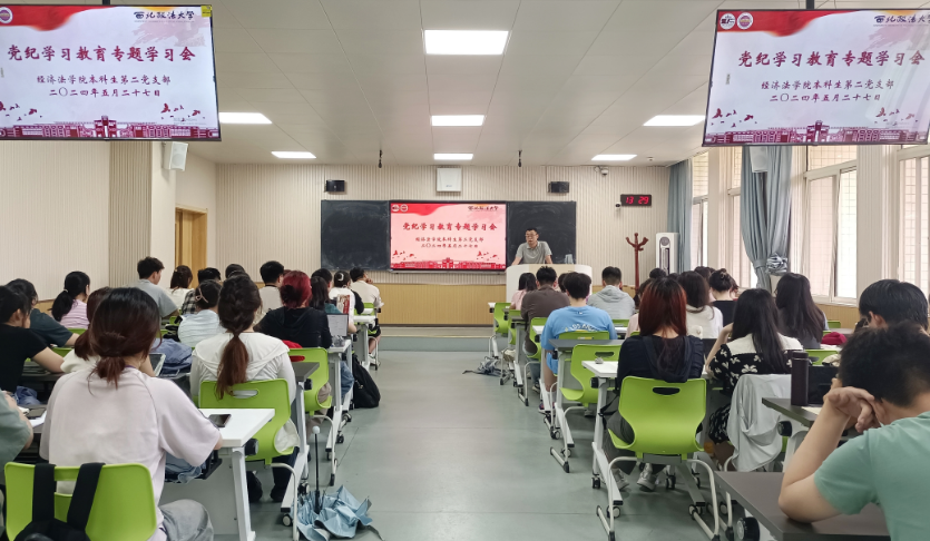 为深入学习贯彻习近平总书记关于党纪学习教育重要讲话和重要指示精神,5月27日中午,新葡的京集团35222vip本科生第二党支部在长安校区正心楼a302教室开展党纪学习教育专题学习会。会议由党支部书记李冬冬主持,支部成员近60人参加。