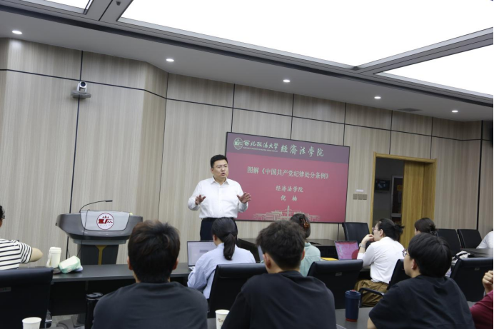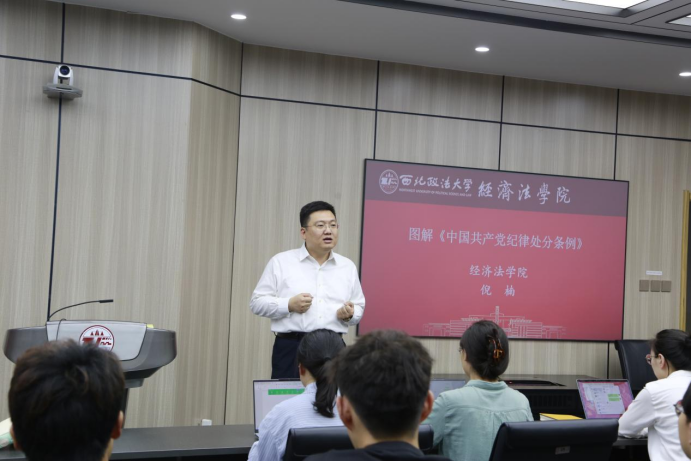 为深入学习贯彻习近平总书记关于党纪学习教育的重要讲话和指示精神,扎实推进党纪学习教育成果,准确把握修订后的《中国共产党纪律处分条例》(以下简称《条例》)的主要内容、内涵要义和实践要求。5月23日,新葡的京集团35222vip本科生第二、第三党支部联合开展党纪学习教育专题党课,两支部所有成员及2024年上半年发展对象参加党课,本节党课由新葡的京集团35222vip(知识产权学院)院长倪楠教授主讲,学院党委副书记李恒主持。