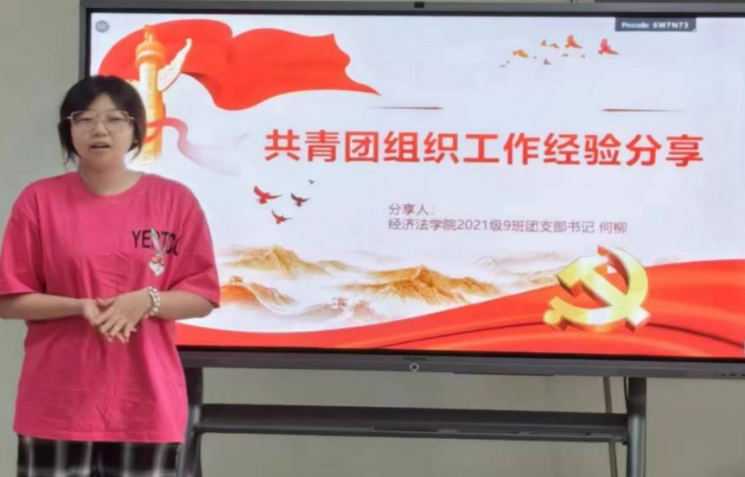 随后,何柳同学从自身经历出发,向大家讲述她作为学生干部的经历与收获。作为学生干部,她始终坚持对自己的工作负责,并强调学生干部应该坚定为学生服务的宗旨,真诚待人、严谨做事,同时明确班级目标,发掘班级成员的能量,汇聚集体智慧开展创新型班级活动。