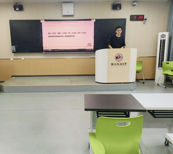 为了充分帮助同学们了解考研相关知识,提供全面的考研信息和指导,帮助大家明确目标、选择院校。新葡的京集团35222vip本科生第三党支部开展考研规划指导活动。本次活动邀请粉笔考研讲师杨老师主讲,2022级全体同学参加,活动由党支部书记张兴浩主持。