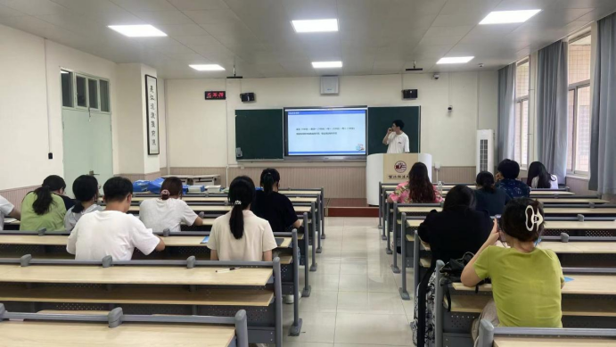 杨老师以PPT的方式向帮助同学们解决备考过程中的问题,分享备考经验和策略,带领同学们大致的分析了考研的科目以及分值的分布,全面的介绍了备考所需了解的基本知识。同时,杨老师深入地剖析考研的择校问题,在对于成绩的分析基础之上为同学们介绍了学校选择的重点。