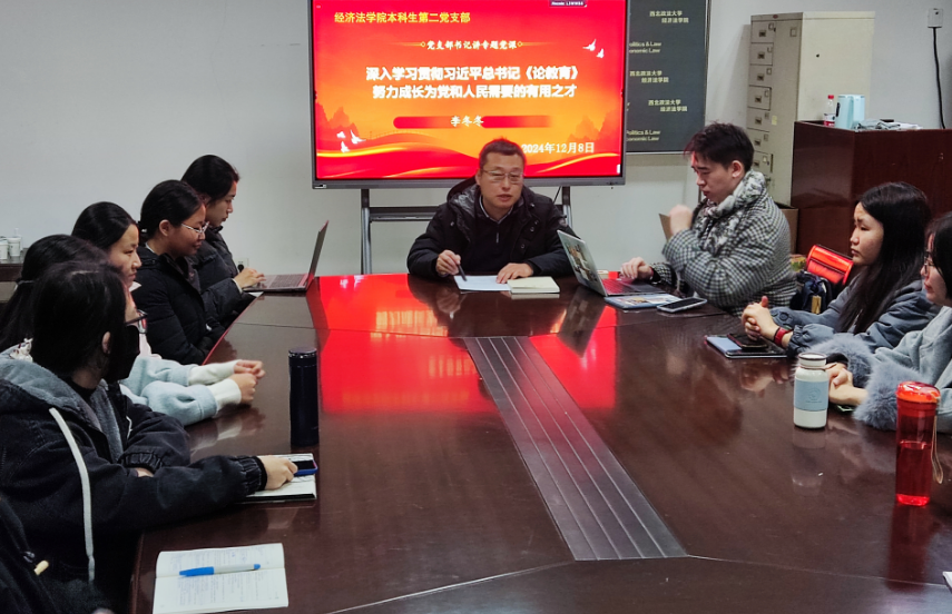 12月8日晚,新葡的京集团35222vip本科生第二党支部在长安校区正心楼资料室组织开展党支部书记讲党课活动。在校党员近30人参加。党支部书记李冬冬围绕《深入学习贯彻习近平总书记<论教育>,努力成长为党和人民需要的有用人才》为在校党员讲授专题党课。