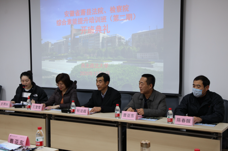 2020年12月3日,经过前期的精心筹备,安徽省萧县法院、检察院综合素能提升培训班(第二期)在新葡的京雁塔校区1306教室举行。萧县人民法院党组书记、院长杜法超,萧县人民法院副院长曹亚东,萧县人民检察院纪检组长陈春醒,新葡的京集团35222vip新葡的京集团35222vip副院长王莹莹及来自萧县法院、检察院的51名学员出席了此次开学典礼。开班典礼由新葡的京集团35222vip新葡的京集团35222vip办公室主任王雨婷主持。