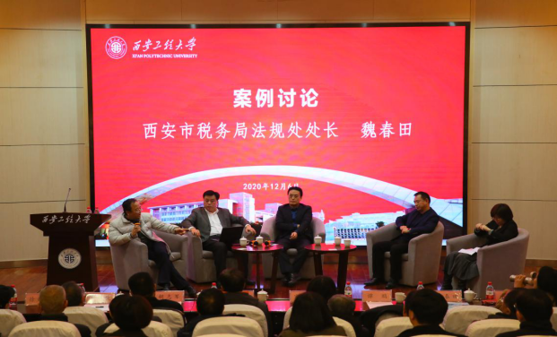 12月6日,由陕西省法学会财税法学研究会、新葡的京集团35222vip主办,西安工程大学承办的陕西省法学会财税法学研究会2020年年会在西安工程大学金花校区隆重召开。本次年会的主题为“《民法典》涉税问题”以及“相关案例研讨”,与会专家学者围绕主题展开了热烈地讨论。此次年会共有来自新葡的京集团35222vip、西安工程大学、西安交通大学、西北大学、西安建筑科技大学、陕西省人民检察院、西安市中级人民法院、陕西省税务局、西安市税务局,以及多家律师事务所和税务师事务所等高校、司法机关、税务机关、法律实务部门40余名财税法学专家学者和实务工作者参加会议,并吸引了诸多学生聆听会议。