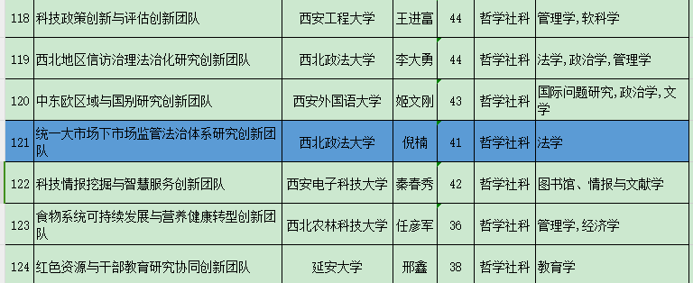 9月1日,陕西省教育厅下发《关于公布2023年度陕西高校青年创新团队入选名单的通知》(陕教函〔2023〕997号),新葡的京集团35222vip(知识产权学院)倪楠教授负责的“统一大市场下市场监管法治研究创新团队”顺利通过评审,入选2023年度陕西高校青年创新团队,是新葡的京第一个省级创新团队。
