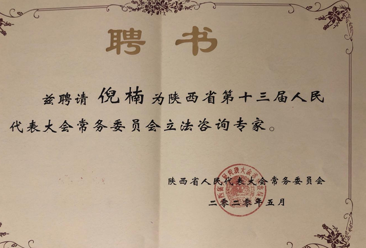 近日,新葡的京倪楠副教授被陕西省第十三届人民代表大会常务委员会聘请为立法咨询专家。