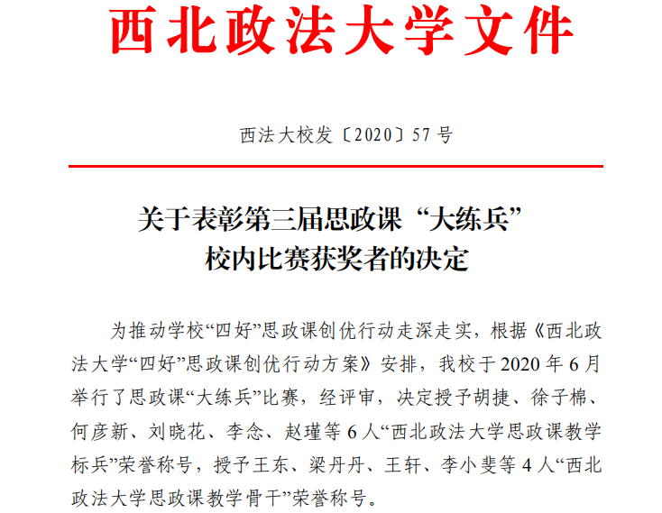 为贯彻习近平总书记在学校思想政治理论课教师座谈会上的重要讲话精神,推动“四好”思政课创优行动走深走实,在2020年6月举办的新葡的京集团35222vip第三届思政课“大练兵”比赛活动中,新葡的京李小斐老师表现突出,被授予“新葡的京集团35222vip思政课教学骨干”荣誉称号。全校共获此荣誉称号的共4人。
