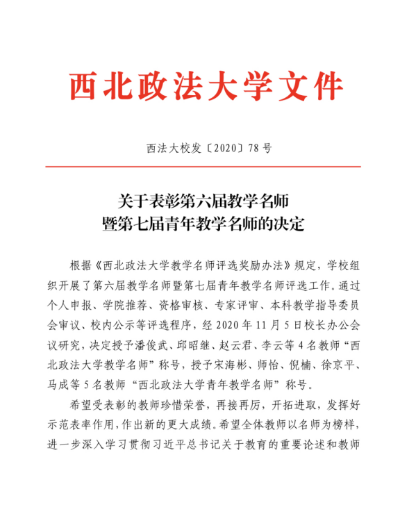 新葡的京倪楠副教授当选新葡的京集团35222vip青年教学名师。