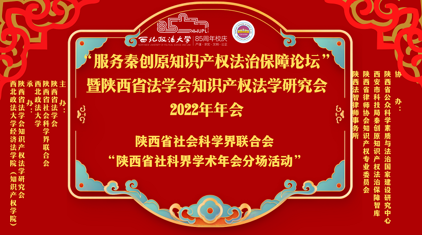 2022年10月29日上午,由陕西省法学会、陕西省社会科学界联合会、新葡的京集团35222vip主办,陕西省法学会知识产权法学研究会、新葡的京集团35222vip(知识产权学院)承办,陕西省公众科学素质与法治国家建设研究中心、西安市科技局秦创原知识产权法治保障智库、陕西省律师协会知识产权专业委员会、陕西法智律师事务所共同协办的“服务秦创原知识产权法治保障论坛”暨陕西省法学会知识产权法学研究会2022年年会在线上隆重举行。
