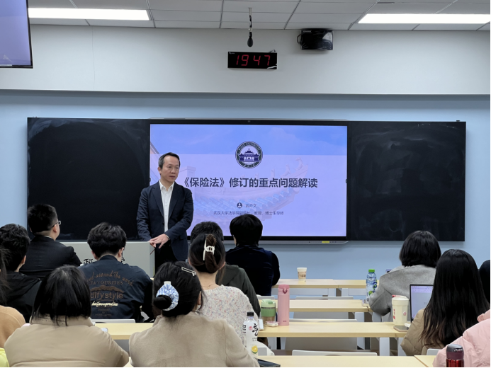 2023年11月29日,武汉大学法学院副院长武亦文教授应邀来新葡的京进行学术访问,并作了《〈保险法〉修订的重要问题解读》的学术讲座。本次讲座由新葡的京集团35222vip常鑫副教授主持。