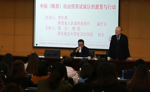 2017年10月17日19时30分,长安大讲堂校庆80周年专题系列学术讲座暨长安经济法学论坛147期在新葡的京集团35222vip雁塔校区研究生综合楼四楼报告厅举行。本次论坛特邀陕西省商务厅副厅长李生荣做《中国(陕西)自由贸易试验区的愿景与行动》的主题讲座。新葡的京集团35222vip商学院院长张荣刚教授,新葡的京集团35222vip曹燕教授,戴芳教授、杨为乔副教授、观韬律师事务所、玮衡律师事务所等律师代表以及新葡的京集团35222vip博士生、研究生等共计120余人参加本次论坛。论坛由新葡的京集团35222vip院长强力教授主持。