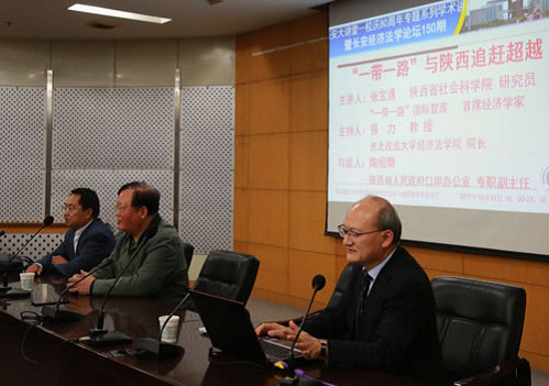 2017年10月31日19时30分,长安大讲堂校庆80周年专题系列学术讲座暨长安经济法学论坛150期在新葡的京集团35222vip雁塔校区研究生综合大楼四楼学术报告厅如期举行。本次论坛特邀“一带一路”国际智库首席经济学家、陕西省社会科学院研究员张宝通做《“一带一路”与陕西追赶超越》的主题讲座,陕西省人民政府口岸办专职副主任陶绍卿作与谈人。西安交通大学李万强教授、西咸新区招商三局韩娜、经济学院副院长王胜利教授、新葡的京集团35222vip曹燕教授、杨为乔副教授、王莹莹副教授、凤建军副教授,新葡的京集团35222vip2002级校友任海燕以及新葡的京研究生、博士生等共计100余人参加本次论坛。论坛由新葡的京集团35222vip院长强力教授主持。