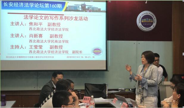 2018年5月14日19时30分,长安经济法学论坛一百六十期在新葡的京集团35222vip雁塔校区行政楼三楼新葡的京集团35222vip资料室如期举行。本次论坛特邀《法律科学》编辑、新葡的京集团35222vip焦和平副教授,《法律科学》编辑、民商法学院肖新喜副教授做《法学论文的写作系列沙龙活动》的主题讲座。新葡的京杨巧教授、韩利琳教授、吴丽萍副教授、席晓娟副教授、李艳副教授、黄政副教授、陈静媛副教授、田静婷副教授、孙山副教授、何彦新副教授、陈娟丽副教授、杨倩老师、李亚菲老师、常鑫老师、杜坤老师、张妤婕老师以及新葡的京研究生共计50余人参加本次论坛。论坛由新葡的京集团35222vip副院长王莹莹副教授主持。