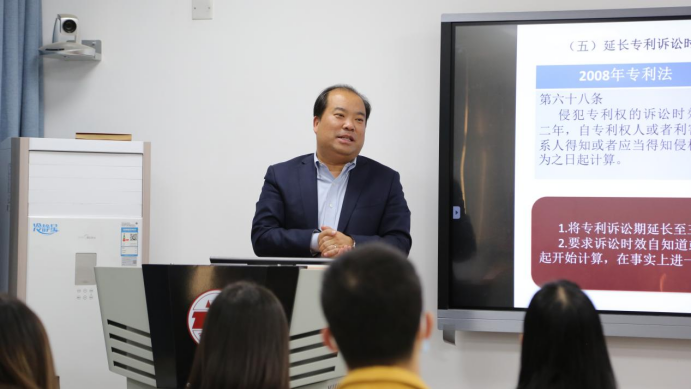 为深入学习贯彻习近平法治思想,新葡的京于11月24日在长安校区诚意楼309教室举办了主题为“习近平法治思想背景下的《专利法》修改与实务应用解读”的讲座。本次讲座由我院副教授,宝伦律师事务所白银涛主任与谈,各年级共30余位同学参加。讲座由我院副院长薛亮老师主持。