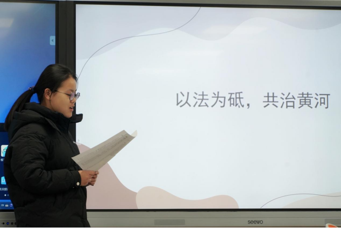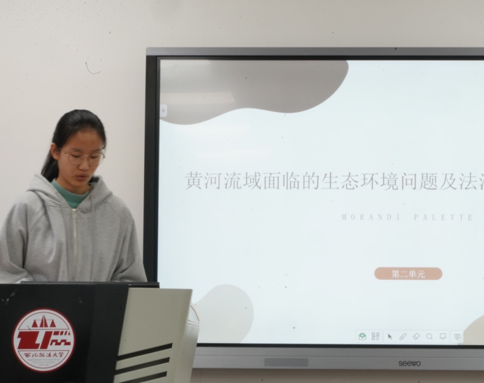 2020级杨艳同学就黄河流域生态环境治理中的问题及对策进行了详述,着力向同学们介绍了在治理过程中结合上、中、下游具体生态实际开展工作的必要性。她将生态治理中的问题意识与具体问题相结合,充分吸取了所研读文章核心内容并进行了理性分析。