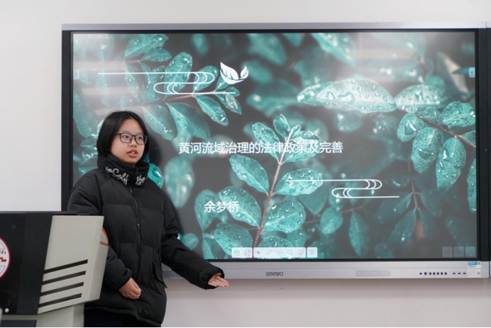 2020级王泽宽同学以协同观念为核心,由点及面阐述了协同治理在黄河流域生态环境保护中的应用,并侧重介绍了政府协同中的地方政府府际协同。在讲述过程中,她吸收欧洲莱茵河、美国田纳西流域等外国流域治理协调机制经验,向同学们分享了流域治理的有效措施。
