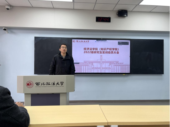 为帮助研究生树立正确实训观念,端正实训态度,明确实训安排、要求及方向,进一步在实训中提升实践能力,新葡的京集团35222vip(知识产权学院)于3月1日中午在雁塔校区三号教学楼召开2022级研究生实训动员大会。学院副院长肖新喜教授、党委副书记李恒、教务办秘书徐靓及2022级全体研究生参会。研究生辅导员吕悦主持会议。