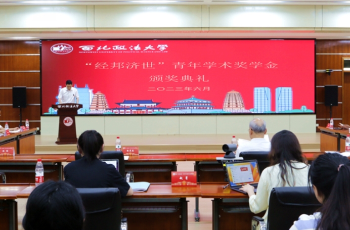 6月20日下午,“经邦济世”青年学术奖学金颁奖典礼在长安校区图书馆一楼学术报告厅顺利举办。校党委委员、副校长孙昊亮,党委学工部、教务处、科研处等职能部门负责人、《法律科学》编辑部、经济法(知识产权)学院师生代表100余人出席颁奖典礼。颁奖典礼由经济法(知识产权)学院院长倪楠主持。