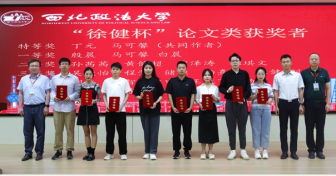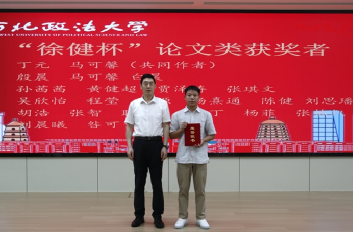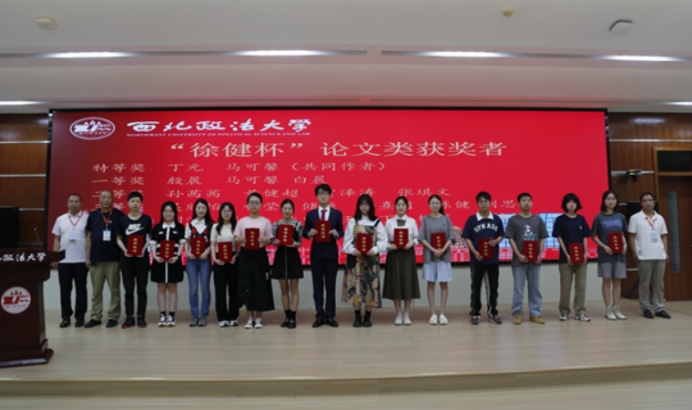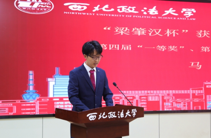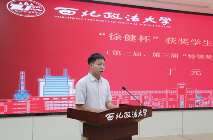 “梁肇汉杯”第四届一等奖、第五届三等奖获得者马杰、“徐健杯”第二届特等奖、第三届特等奖获得者丁元作为学生代表发言,表示要把论文写在法律实践中,将感恩写进论文里,努力尝试站在更大舞台展现西法大学子风采。