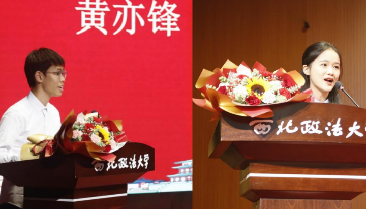 硕士生代表董陈钊雅在发言中表示研究生阶段是锻炼品格的关键时期,不仅要获得专业知识,更要在“严谨求实文明公正”的校训引领下,肩负起建设社会主义法治国家的伟大使命。