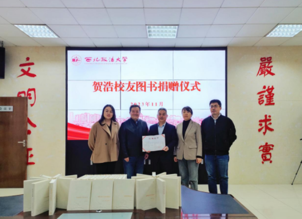 贺浩向图书馆捐赠了个人收藏的《三联经典文库第一辑》图书共计100种115册,并回顾了自己求学期间与图书馆结缘的温馨往事,表达了对母校的深厚感情。他表示此次捐赠的《三联经典文库第一辑》是自己珍藏多年的书籍,有幸捐赠给母校图书馆也是该套图书最好的归宿,希望能够以这种形式为学校事业的发展尽一份自己的力量。