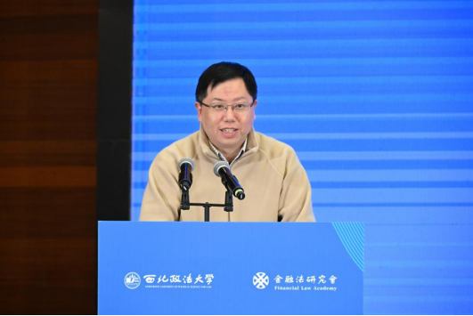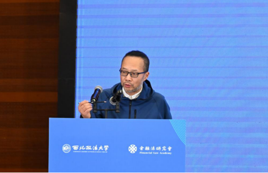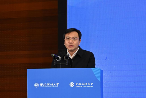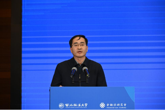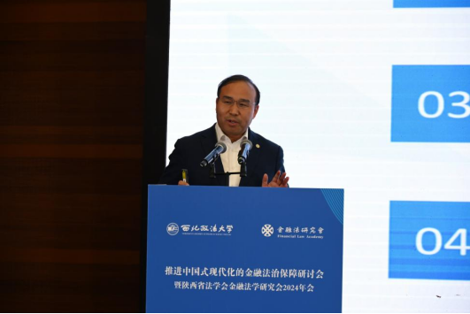 苏虎超局长在致辞中代表陕西省地方金融管理局祝贺本次研讨会成功举办。苏虎超局长指出,金融是国民经济的血脉,本次研讨会围绕“中国式现代化的金融法治保障”展开,恰逢其时且意义深远。当前中国特色金融发展道路不断推进,金融法治建设面临新的挑战,希望金融法学研究会继续深入学习贯彻党的二十届三中全会精神,加强金融法治人才培养,推动金融法治研究走深走实,继续为金融强国建设提供理论支持,充分发挥金融法治研究智库功能,密切关注陕西地方金融法治改革,积极参与陕西金融法治建设,为陕西金融业发展献策,为加快构建陕西特色金融法治体系贡献学术力量。苏虎超局长指出,中央经济工作会议明确提出要防范金融风险,加强金融监管。陕西省地方金融管理局将继续结合陕西实际,做好地方金融执法,有效应对金融风险,化解金融矛盾。