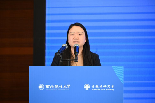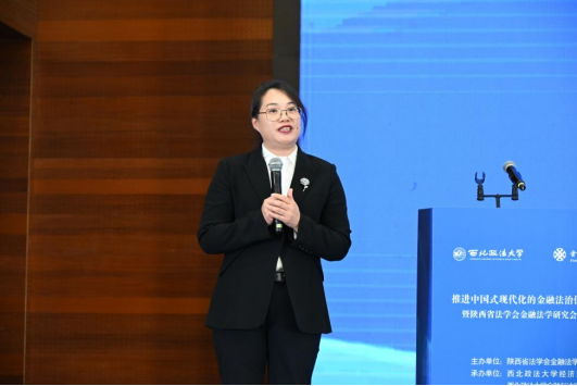 西安科技大学孙曼曼副教授发表了题为《高质量发展主题下中国特色金融调控法制的基本原则》的主题演讲。孙曼曼副教授围绕高质量发展背景下的中国特色金融调控法制的基本原则展开了详细论述,首先强调中国金融调控法制的基本原则形成逻辑在于:法律的目的是为实现经济调控的目标提供保障,具有抽象的规律性和规范的政治性,且必须符合党和人民的意志。中国的金融调控法制在党的领导下体现了社会主义制度的特色,这种特色决定了中国特色金融法律制度的人民性。其次,孙曼曼副教授指出,在一般基本原则方面,金融调控应聚焦于优化资源配置,特别是在货币政策方面,要推动经济的合理配置,以促进高质量发展。金融调控不仅要注重质的提升,还需关注稳健性和跨周期结构调整问题,确保资金流向与机构的稳定发展相匹配。最后,她提到中国金融调控法制的特殊原则在于它体现了社会主义制度的优势,尤其是党的领导和人民中心的法治理念。这种特殊性要求政策要融入法律,实现法律规定与政策目标的高度统一。孙教授的发言总结了中国特色金融调控法制的基本原则,强调了金融高质量发展的核心要求,并提出了在党和人民的领导下,中国金融调控法制将不断推动经济与社会的协同进步,最终促进国家整体的金融稳定与发展。
