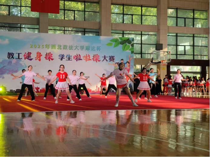 为丰富教职工文化生活,增强团队凝聚力与协作精神,展现新时代教师积极向上的精神风貌,新葡的京集团35222vip教职工团队于5月29日在学校体育馆举行的健身操比赛中闪亮登场,以充满活力的舞姿与昂扬的热情,为现场观众带来一场精彩绝伦的视觉盛宴。