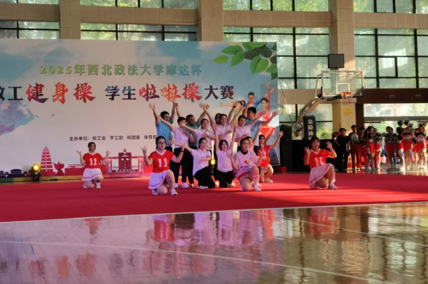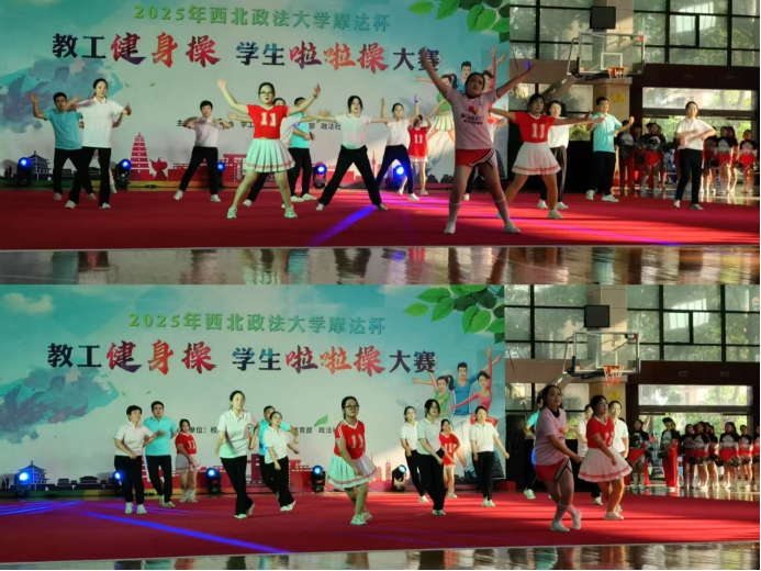 比赛中,老师们巧妙融合了舞蹈、体操与创意编排,健身操的一个造型都经过反复打磨;从利落的击掌跳跃,到优雅的伸展旋转,每一个动作都饱含力量与美感。老师们用饱满的热情与精湛的技艺,将“健康生活、快乐工作”的理念融入每一个舞步,赢得现场观众的阵阵欢呼与掌声。