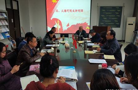 院长义海忠结合学院工作情况与自身教学经历以思政进课堂为主题讲授党课。他指出要结合党的历史发展和初心使命,充分发挥新葡的京四个学科的学科优势,借助教学工作平台将思政教育融入课堂教学,强调教师要端正认识,自愿自觉,主动在教学工作中引入思政教育内容,将思政进课堂落在实处。