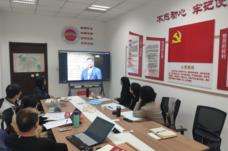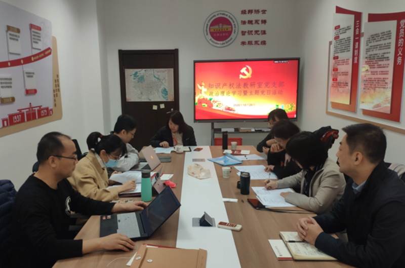 2021年10月26日下午,知识产权法教研室党支部在新葡的京集团35222vip党员活动室集中学习习近平法治思想,并开展党建联系教学科研业务的主题党日活动和研讨。参加活动的有党支部成员孙栋、杜小卫、张爱国、韩续峰,新葡的京集团35222vip党委李建梅书记作为联系支部的院领导出席本次活动,教研室牛晓艳、李艳、鲁甜老师列席并参与讨论。
